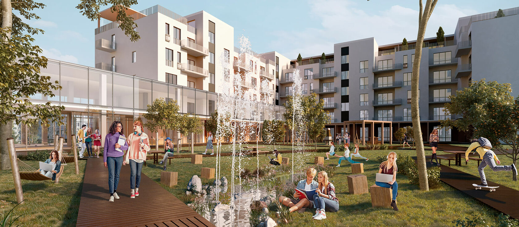 Реконструкция зданий отвечает задаче создания неспециализированного жилого фонда, способного принимать широкий спектр посетителей. Здание предназначено для одновременного проживания учащихся школы Сириус и гостей Технопарка, объем жилого фонда гибко делится между этими категориями, внутренние пространства и территория имеет жесткую границу.